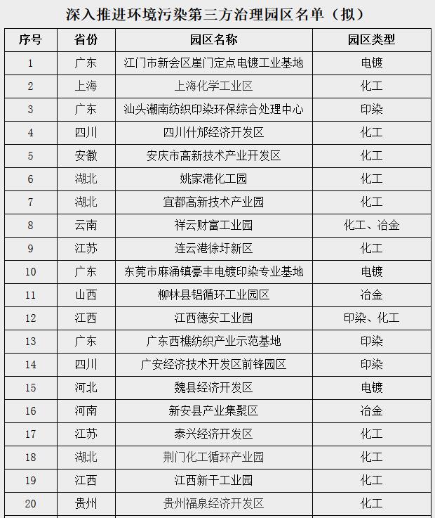 關於深入推進環境汙染第三方治理園區名單的公示