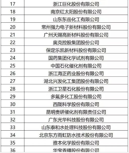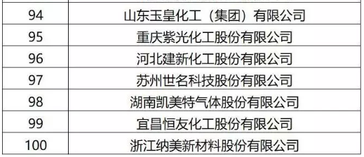2019年11月28日,在由全國精細化工原料及中間體行業協作組、中國化工情報信息協會在廣西北海聯合主辦,中國化工信息中心承辦,北海市鐵山港區人民政府、北海市鐵山港(臨海)工業區管理委員會協辦的“第十九屆國際精細化工原料及中間體(鐵山港)峰會暨2019中國精細化工百強發布會”上,公布了“2019中國精細化工百強”榜單。