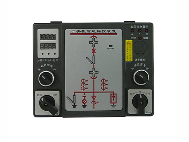 智能操控裝置具有一次回路模擬圖及開關狀態指示,高壓帶電顯示,自動溫濕度控製,人體感應自動照明,語音提示,電參數測量及RS485通訊接口等眾多功能,集操作、顯示於一體。